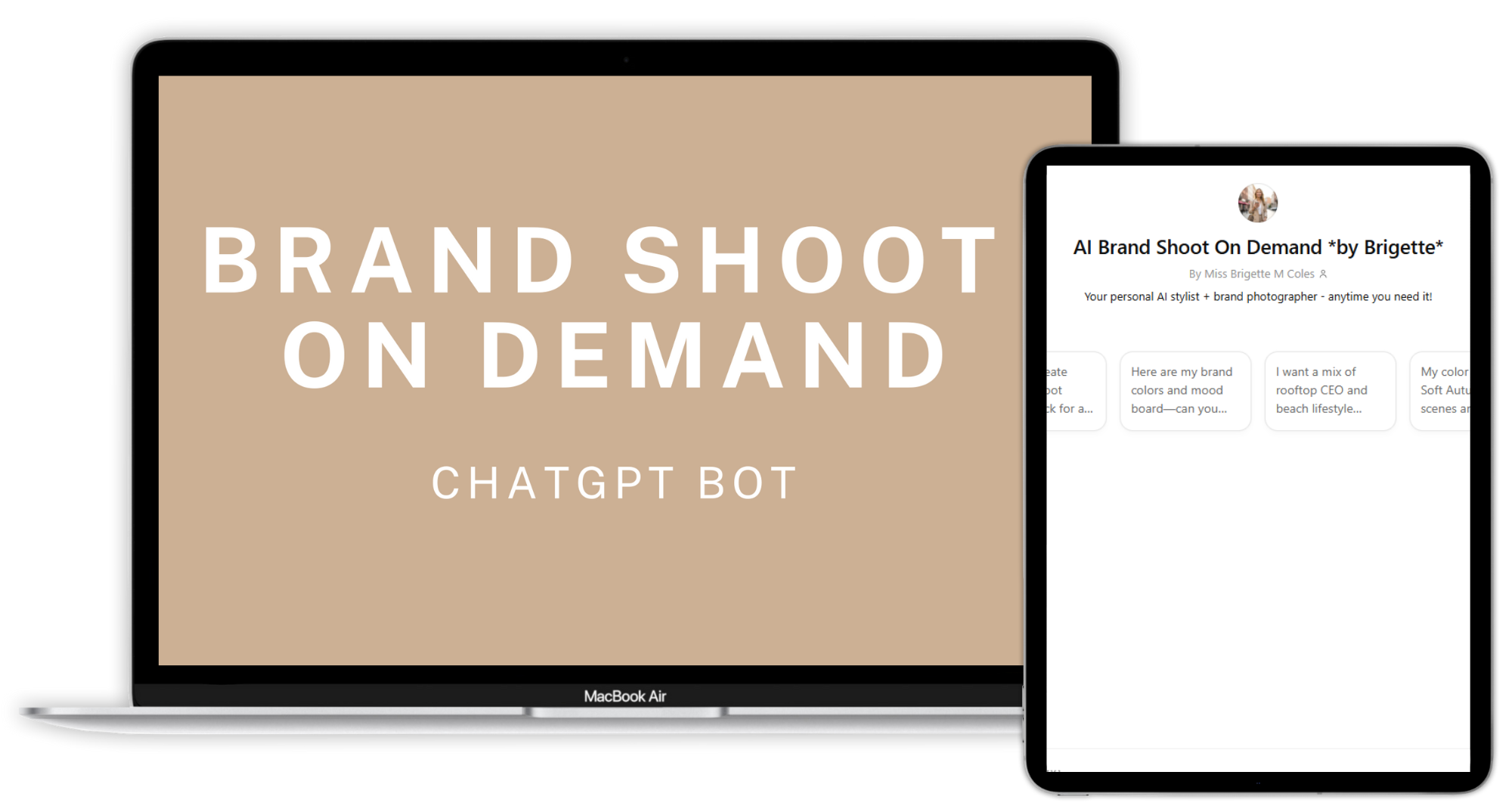 ✨ A complete system to create your dream brand shoot from home — with zero design skills, tech stress, or camera time required.