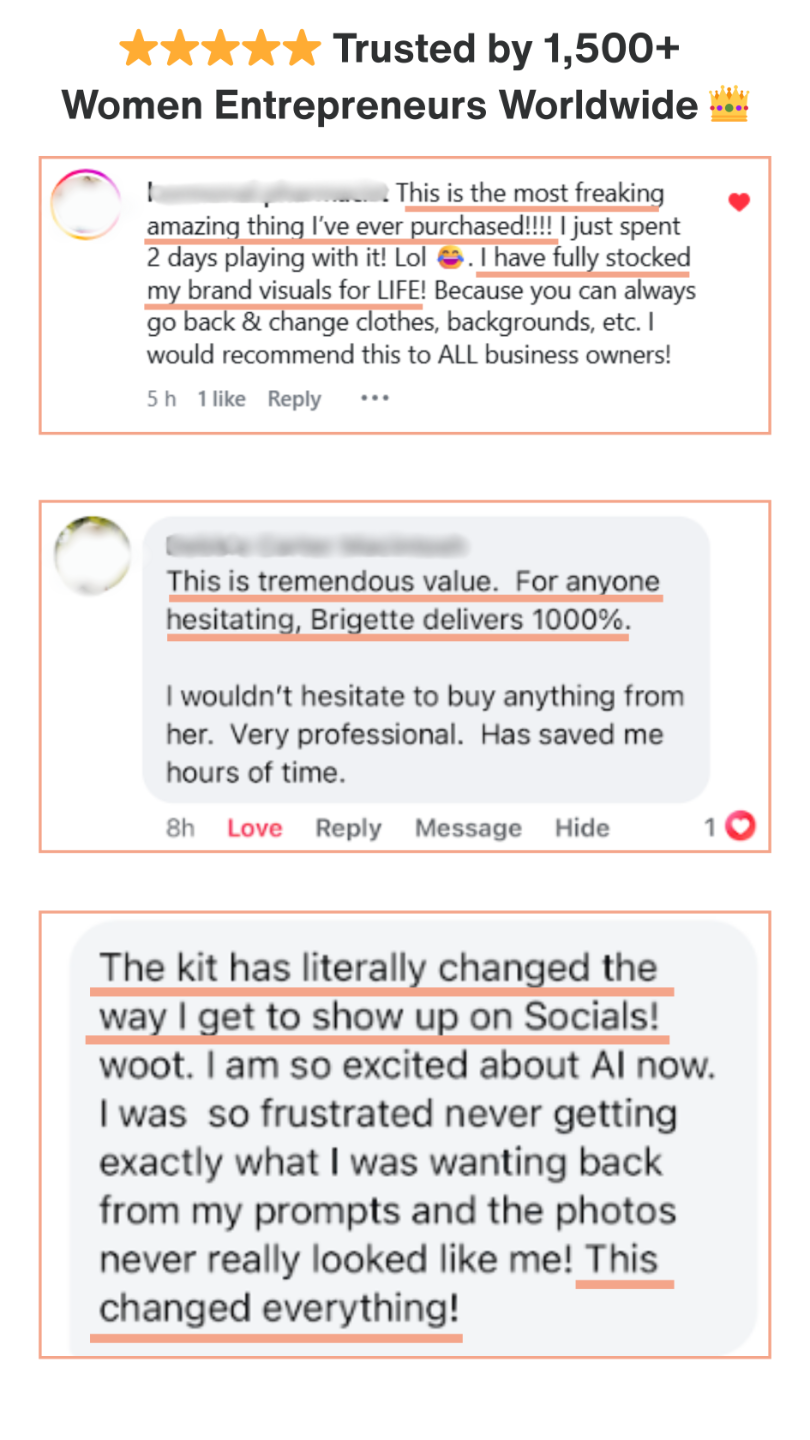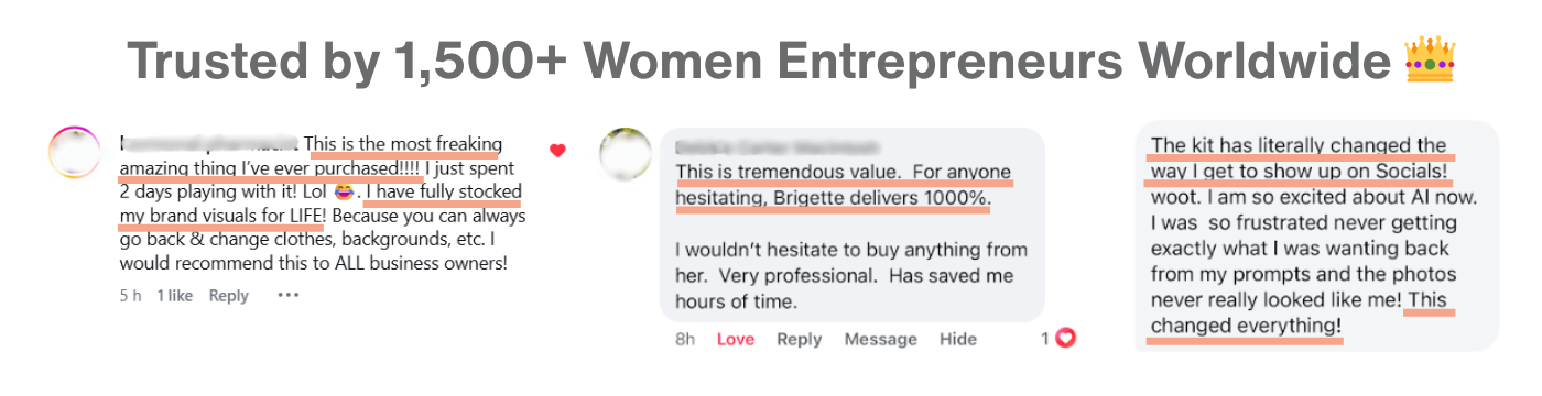 YES, I’M IN! LET’S START MY BRAND SHOOT TODAY! 🌟You don’t have to take my word for it… here’s what other women entrepreneurs are saying: